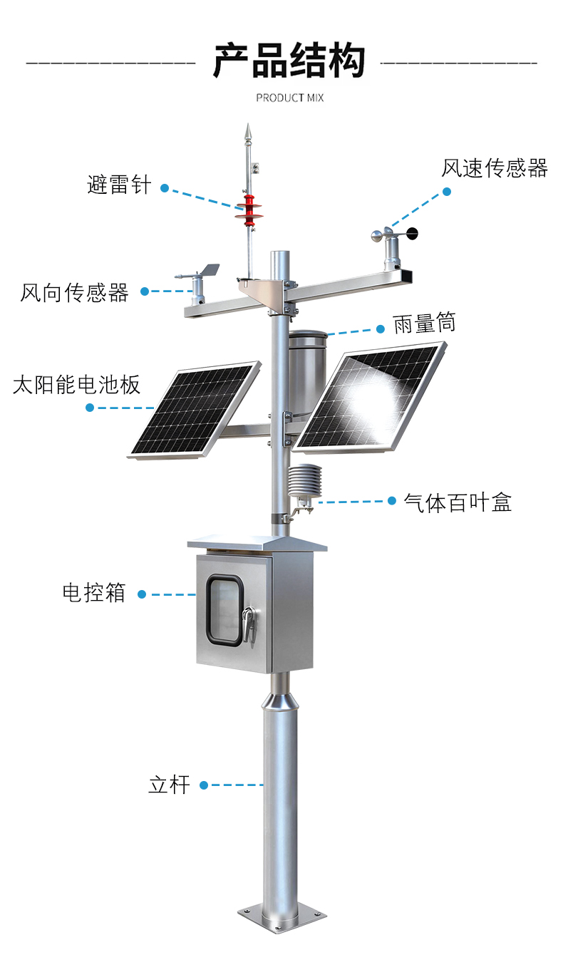 2、外接翻斗式雨量计,可采集总雨量、瞬时雨量、日雨量、当前雨量。